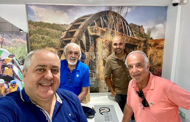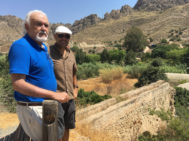La mañana también ha servido para que los dos visitantes conocieran los encantos naturales y culturales de la zona norte del Valle de Ricote, guiados por nuestro compañero Jesús Joaquín López Moreno, quienes han recorrido la Ruta de las Norias de Abarán y visitado el Acueducto de la Noria de Corona (Cañada del Hidalgo), que antaño irrigaba la Huerta de Darrax (Blanca) y que perteneció a Francisco Javier de Molina, Marqués de Darrax, en las primeras décadas del siglo XVIII.