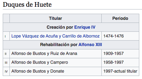 El Ducado de Huete tiene su origen en 1474. El título fue rehabilitado por Alfonso XIII en 1909 en la figura de Alfonso de Bustos Ruiz de Arana, abuelo del actual Duque de Huete. Aunque aquel nació y murió en Madrid, estuvo muy vinculado a Archena, realizando una gran labor en pro de la agricultura de esta villa, hasta tal punto que, en 1953, el ayuntamiento aprobó que la calle denominada «Carril Viejo» pasara a ser nombrada «Calle Duque de Huete». El II Duque de Huete desciende del ricoteño Rafael de Bustos y Llamas, Marqués de Corvera, siendo la madre del último Juana de Llamas y Molina, de la hidalga familia de Llamas, que entre sus miembros destacan Francisco de Llamas y Molina, caballero de la Orden de Santiago, y sus hermanos Sancho (gran jurisconsulto) y Pedro (mariscal de campo). Primo de estos fue el citado Francisco Javier de Molina, Marqués de Darrax, a quien se le debe el topónimo abaranero «Cañada del Hidalgo», también nombrado «Cañada de Hidalgo», «Cañada Hidalgo» o «Cañilargo», paraje visitado donde se localizan los restos de la noria fluvial que irrigaba la Huerta de Darrax.