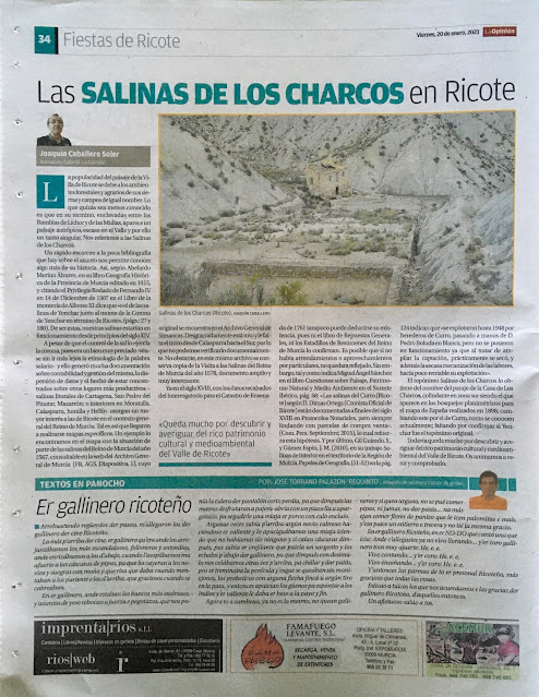 Como en ediciones anteriores, miembros de la Asociación Cultural «La Carraila» han aportado su saber en el suplemento de las fiestas de Ricote del periódico La Opinión de Murcia, especial coordinado por Alberto Guillamón e hijos desde hace 35 años. En sus páginas se pueden leer los artículos «El Carrerón. Un desfiladero en el camino histórico de Ricote a Andalucía», de Jesús Joaquín López Moreno y José María Gómez Manuel, y «Las Salinas de los Charcos en Ricote», de Joaquín Caballero Soler. Pinchando en sus títulos, podéis acceder a su versión digital.