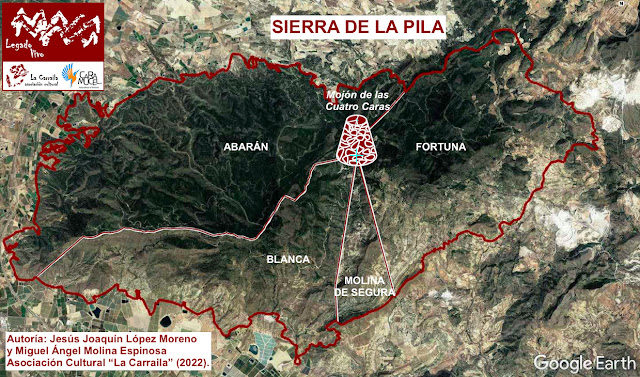 Hace un año se inició la causa asociativa, desde «La Carraila» y «Caramucel, naturaleza e historia», y administrativa, desde Abarán, Blanca, Fortuna y Molina de Segura, para restituir el Mojón de las Cuatro Caras y emplearlo como seña de identidad del Parque Regional Sierra de la Pila (Primeros pasos administrativos para recuperar y señalizar el Mojón de las Cuatro Caras). Esta mañana, Felipe García Carrillo, concejal de cultura de Abarán nos ha comunicado que la Dirección General de Medio Natural va a reconstruir el Mojón de las Cuatro Caras. Sin duda, será un relevante elemento que servirá para crear el recurso de turismo cultural «Sierra de la Pila, Legado Vivo», dentro del proyecto cultural «Legado Vivo» (https://legadovivo.blogspot.com/).