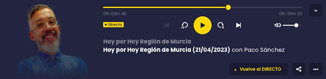 Con motivo del II Gastroencuentro Valle de Ricote en Blanca, el programa radiofónico «Hoy por Hoy Región de Murcia» ha entrevistado al compañero Jesús Joaquín López Moreno para hablar de la producción del proyecto cultural «Legado Vivo» en este término municipal. Su intervención, que se puede escuchar entre los minutos 1h 02 m y 1h 15m, ha versado sobre el Pino del Solvente y los itinerarios patrimoniales señalizados «Patrimonio hidráulico de la Huerta de Blanca» y «De Blanca a Negra».