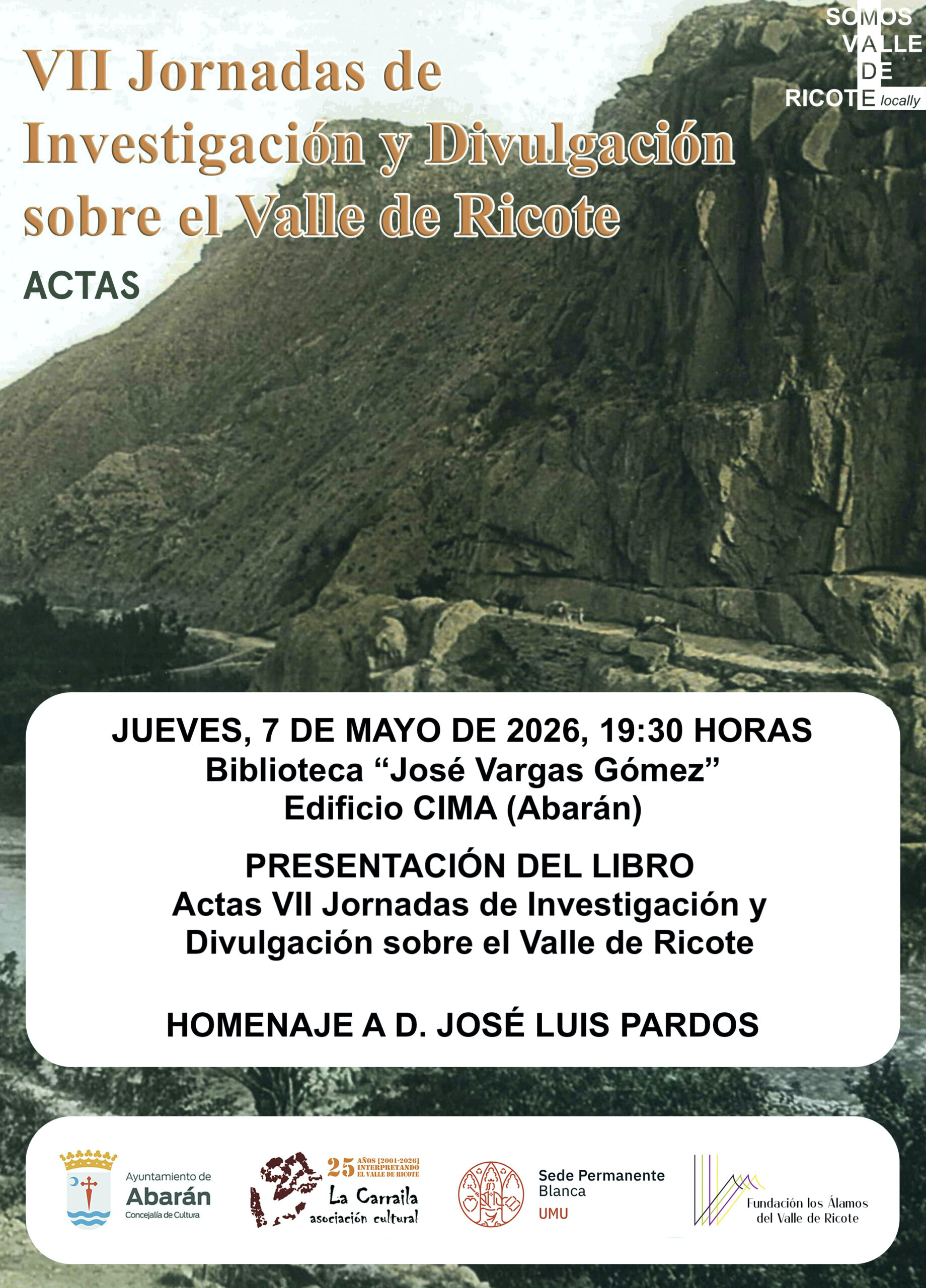 PRESENTACIÓN DEL LIBRO ACTAS VII JORNADAS DE INVESTIGACIÓN Y DIVULGACIÓN SOBRE EL VALLE DE RICOTE, en homenaje a D. José Luis Pardos