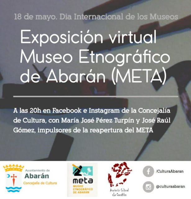 Este año, la Concejalía de Cultura del Ayuntamiento de Abarán no ha querido pasar por alto esta celebración y para ello, en colaboración con el ICOM y «La Carrahila», ha organizado un acercamiento digital a nuestro Museo Etnográfico de Abarán (META). Por ello, a las 20 horas, podréis disfrutar de una exposición virtual del museo a cargo de María José Pérez (Museo Arqueológico de Murcia) y José Raúl Gómez (Asociación Cultural «La Carrahila»). Además, pondremos a vuestra disposición una guía para que podáis visitarlo digitalmente con toda la información.