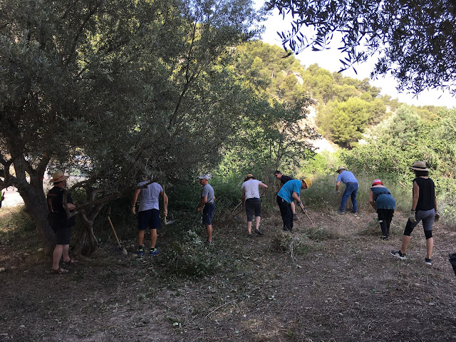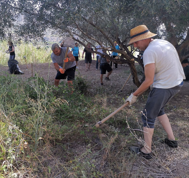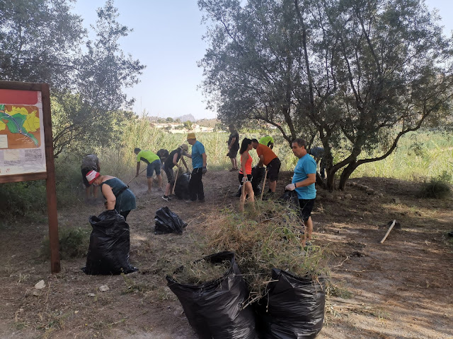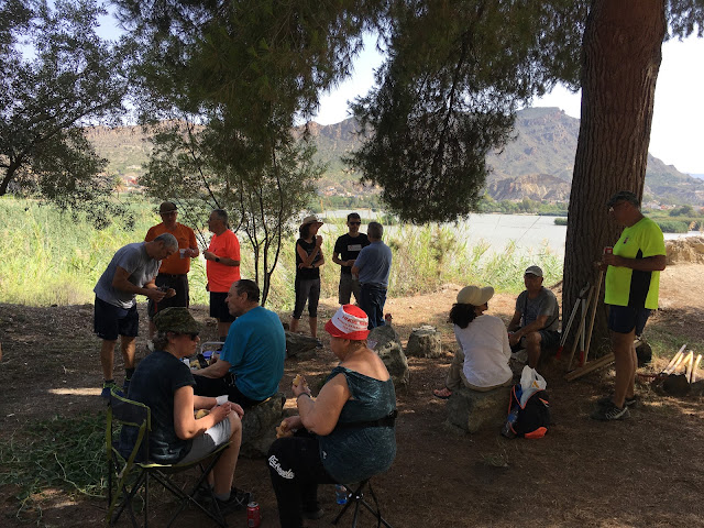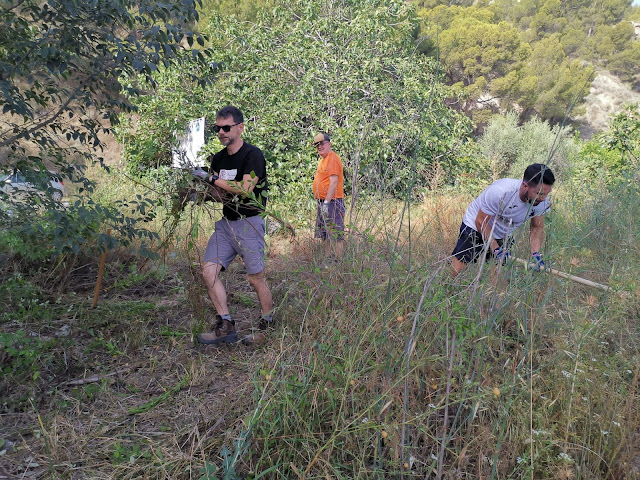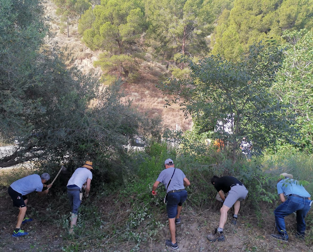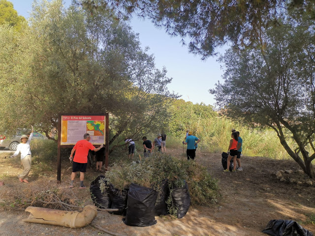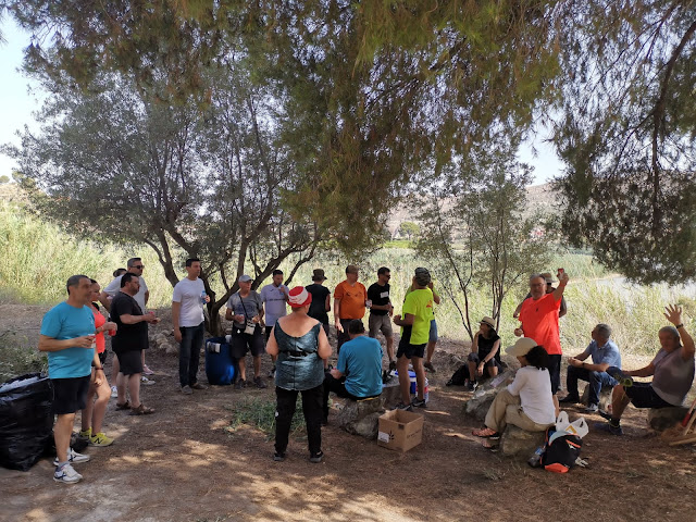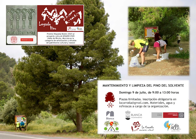 Al terminar, la veintena de participantes, entre los que se encontraba un nutrido grupo del Club de Senderismo de Blanca, hemos estado «so el árbol» para descansar con un refrigerio aportado por el Ayuntamiento de Blanca, cuyo alcalde ha visitado estas labores. Esta jornada también ha servido para presentar la edición en papel del nuevo folleto «Itinerarios patrimoniales señalizados del Valle de Ricote», donde en su cubierta ya aparece el galardón nacional Premio Hispania Nostra 2023 otorgado a Legado Vivo, proyecto cultural iniciado hace 10 años con la restitución simbólica del Pino del Solvente.