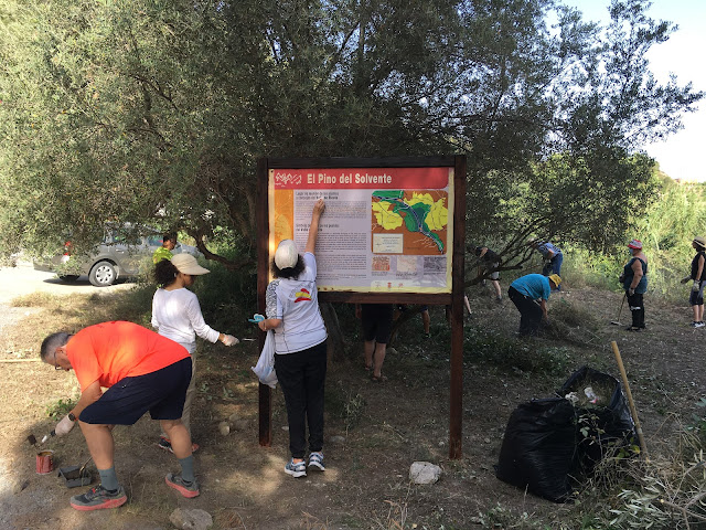 Esta mañana de domingo, como se viene realizando cada dos años desde que se señalizó el nuevo Pino del Solvente en 2013, hemos realizado una MAÑANA DE VOLUNTARIADO bajo su sombra y cobijo para hacer labores de desbroce y limpieza de su entorno.