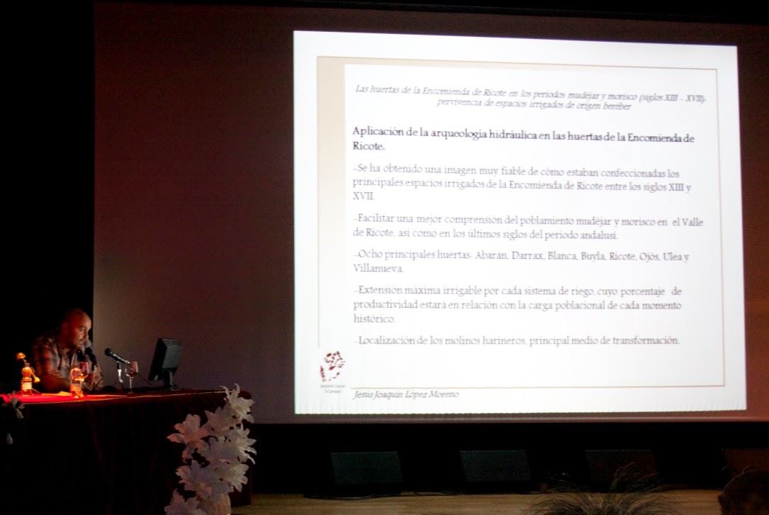 La comunicación de Jesús Joaquín López versará sobre «Las huertas de la Encomienda de Ricote en los periodos mudéjar y morisco (siglos XIII – XVII): pervivencia de espacios irrigados de origen beréber», dentro de la segunda sesión de comunicaciones (sábado 25, 18:05). Por su parte, la comunicación de José María García se titulará «La fragilidad del sistema administrativo santiaguista: un ejemplo en el proceso de asimilación de una población morisca», dentro de la tercera sesión de comunicaciones (domingo 26, 10:45 horas). Ambas charlas se impartirán en el Centro Cultural «Tomás López Poveda».