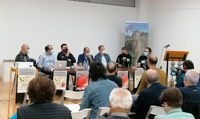 Unas 50 personas asistieron al acto central del XX Aniversario de «La Carraila», que tuvo lugar este viernes 29 de octubre, a las 19:30 horas, en la Sala Adolfo Suárez (edif. CIMA) de Abarán. En la convocatoria se presentó el libro de actas de las pasadas V Jornadas de Investigación y Divulgación sobre Abarán y el Valle de Ricote (2019) y se dio a conocer el cartel y la nueva convocatoria de participación de autores para la próxima edición (2022).El libro Actas V Jornadas de Investigación y Divulgación sobre Abarán y el Valle de Ricote (pinche sobre el título para acceder a su contenido digital) fue presentado por Dr. José Molina Ruiz, profesor del Departamento de Geografía de la Universidad de Murcia; acto en el que también intervinieron Jesús Gómez Montiel, alcalde de Abarán, Pedro Molina Cano, alcalde de Blanca, y Felipe García Carrillo, concejal de cultura del ayuntamiento de Abarán, quien organizó este evento junto a «La Carraila». A estas dos entidades se les debe la edición en papel de la obra presentada.