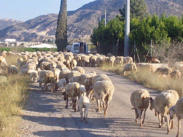 Ganado transitando por la Cañada Real de los Cabañiles en Abarán