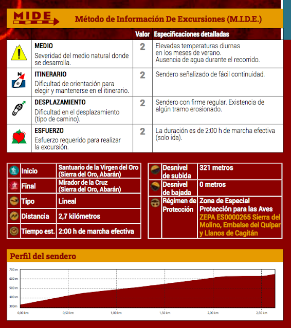 Dificultad: media, a tener en cuenta la fuerte pendiente en algunos tramos. Régimen de protección: Zona de Especial Protección para las Aves (ZEPA)