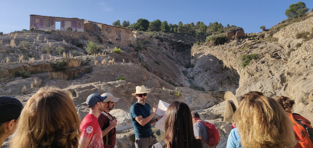 El domingo 15 de octubre, con motivo del ciclo «El patrimonio histórico de Abarán» organizado por la Sede Permanente de la Universidad de Murcia en Abarán, se realizó el primer itinerario didáctico en colaboración con la Asociación Cultural «La Carraila». Aprovechando la infraestructura creada desde el proyecto cultural «Legado Vivo», el compañero José María Gómez Manuel guió una ruta por el itinerario patrimonial «Fuente de Benito». Los enormes recursos naturales y culturales de este enclave fueron empleados para acercar diversos contenidos científicos al público, en especial centrados en su interesante geología, pero también con algunos apuntes sobre su flora y fauna, sin olvidar los vestigios del poblamiento humano de la Rambla de Benito. La ruta contó con la ayuda de Lorenzo Puche Aroca, de la Sede Permanente de la Universidad de Murcia en Abarán, a quien se le debe la autoría de las fotografías.
