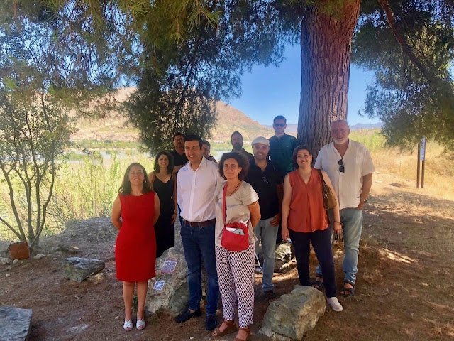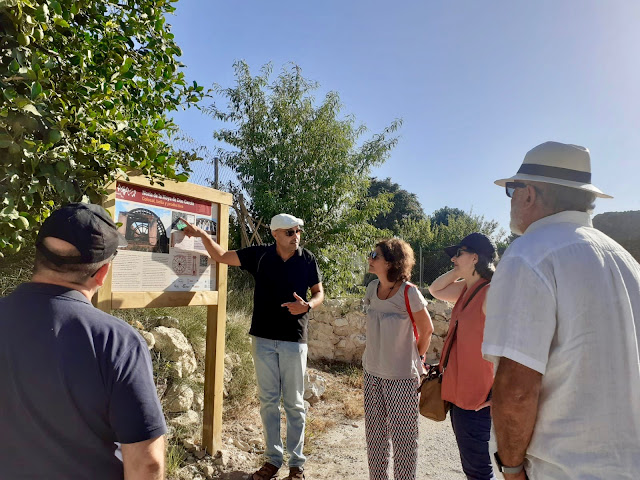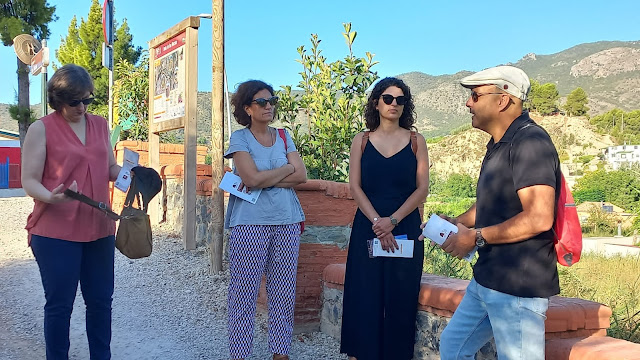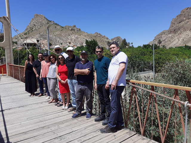 Con anterioridad al acto institucional, los representantes de las tres asociaciones visitaron la Ruta de las Norias, itinerario patrimonial integrado en Legado Vivo desde que se rehabilitara en 2020, conociendo la delegación de Hispania Nostra los elementos más singulares del paisaje cultural del Valle de Ricote y la señalética más representativa del proyecto cultural premiado, así como el lugar elegido para descubrir la placa del Premio Hispania Nostra 2023 en el próximo mes de noviembre (Noria Grande de Abarán), cuyas réplicas también se colocarán en todos los pueblos donde Legado Vivo está presente. Con posterioridad al acto institucional en el Ayuntamiento de Abarán, la delegación de Hispania Nostra recorrió la mayor parte de la producción asociativa de Legado Vivo, donde pudieron visitar los itinerarios patrimoniales De Blanca a Negra, Patrimonio hidráulico de la Huerta de Blanca y Ruta del Salto de la Novia, realizándose una parada obligada en el nuevo Pino del Solvente, el árbol de junta bajomedieval del Valle de Ricote o primer ayuntamiento de la comarca recuperado simbólicamente en 2013; actuación con la que se inició el proyecto cultural premiado. La visita terminó conociendo Territorio de Jaime «el Barbudo» en las latitudes del Parque Regional Sierra de la Pila.