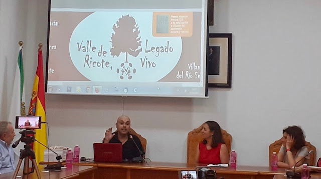 Previo al comienzo del acto oficial, los portavoces de las asociaciones «Hispania Nostra» y «La Carraila» realizaron unas declaraciones ante los medios de comunicación a las puertas del consistorio abaranero. Jesús Joaquín López Moreno, director científico del proyecto cultural «Legado Vivo», dijo que este premio suponía «un reconocimiento al Valle de Ricote, que tiene un impresionante paisaje cultural, cuyos elementos nos han valido para desarrollar el proyecto». Por su parte, Bárbara Cordero, Directora General de Hispania Nostra, hizo hincapié en «que este reconocimiento pone en valor lo que creemos que tiene que ser la salvaguarda del patrimonio cultural», por ello insistió en que «es una muy buena práctica lo que se ha hecho aquí por parte de Legado Vivo, porque el patrimonio se conserva, se respeta y se quiere una vez que se conoce». «Precisamente, toda la labor que se ha hecho aquí es poner en valor lo que fue el pasado, lo que es el presente y lo que puede ser el futuro a través de esos elementos, de esas norias, de esa ruta y de esa interpretación, lo que son motivos suficientes para obtener un galardón de Hispania Nostra», matizó Cordero.