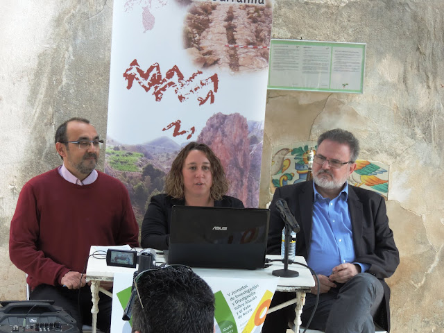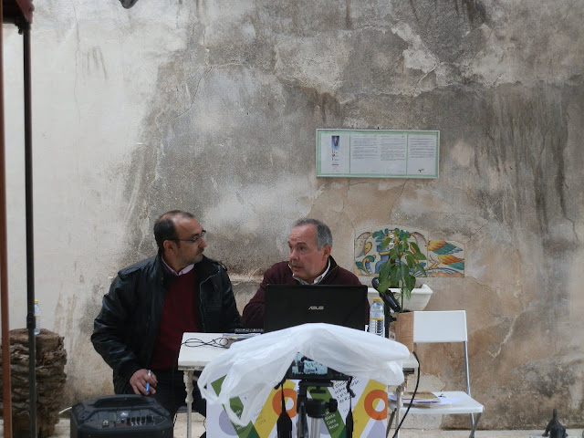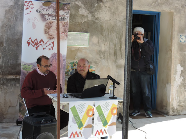 Fue una mañana estupenda, plenamente primaveral (sol, nubes, algo de rasca y lluvia). Durante las comunicaciones pudimos conocer las posibilidades administrativas para que nuestro Valle de Ricote tenga una figura de protección, tan especial, como la de Patrimonio de la Humanidad, todo de la mano de Miguel Ángel Sánchez-Sánchez; en la que María Dolores Piñera Ayala recorrió el Río Segura a través de sus centenarias fábricas de luz; en la que Joaquín Salmerón Juan y María José Morcillo Sánchez mostraron las piezas arqueológicas recuperadas en manos particulares para el disfrute general; y en la que el alamita y abaranero Alfredo Jiménez Gómez desveló los antecedentes del Trasvase Tajo-Segura en los años previos a la Guerra Civil. Una jornada muy disfrutada por los que nos acercamos a ese paraíso de La Hoya de los Álamos, irrigada desde el medievo (para nada desde la Antigüedad), por la Acequia Andelma, a pies del Hisn Siyasa (siglos XI-XIII), puerta norte del Valle de Ricote…