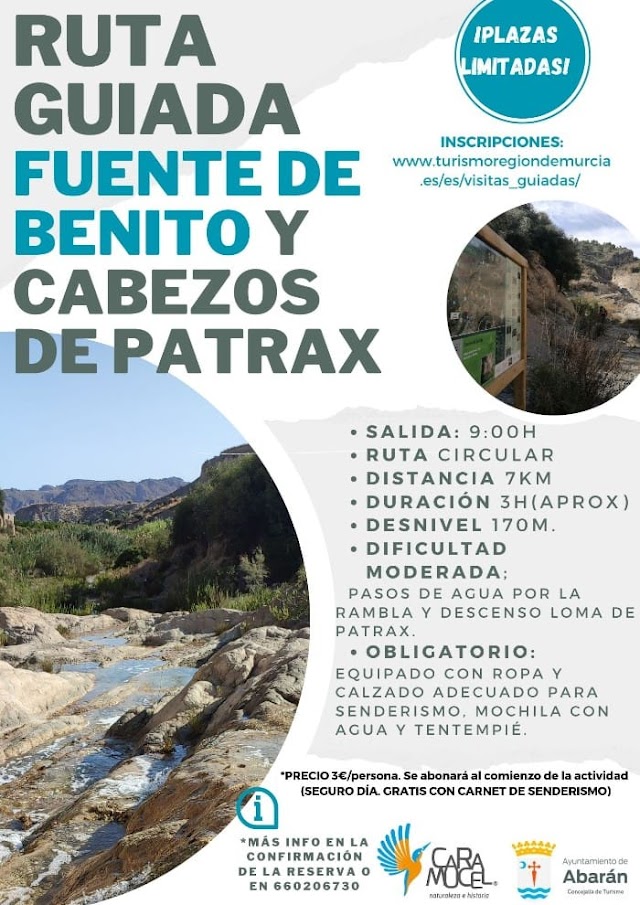 Fuente de Benito es un itinerario patrimonial incluido en el proyecto cultural «Legado Vivo» gracias a la Concejalía de Turismo del Ayuntamiento de Abarán. Pinchando en el siguiente banner, puede acceder a su folleto.