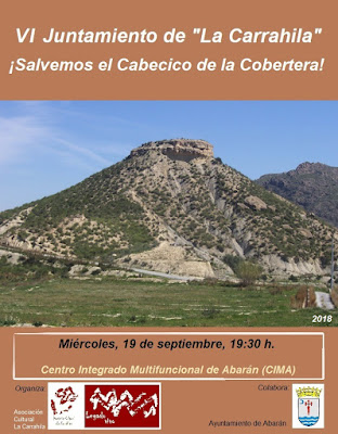 El próximo miércoles, 19 de septiembre, a las 19:30 horas, en el Centro Integrado Multifuncional de Abarán (CIMA), se celebrará el VI Juntamiento de «La Carrahila». En esta edición se darán a conocer los pasos llevados a cabo por esta asociación para proteger el yacimiento arqueológico del Cabezo de la Cobertera (Abarán/Blanca), desde que en enero de 2018 se iniciara la campaña ¡Salvemos el Cabecico de la Cobertera! En el acto intervendrán Juan Antonio Ramírez Águila (Actuaciones Arqueológicas del Sureste), Jesús Joaquín López Moreno y Joaquín Caballero Soler, presentándose el proyecto arqueológico para La Cobertera y una maqueta del granero fortificado de al-Darrax. Te esperamos.JUSTIFICACIÓN DE LA CAMPAÑA ¡SALVEMOS EL CABECICO DE LA COBERTERA!