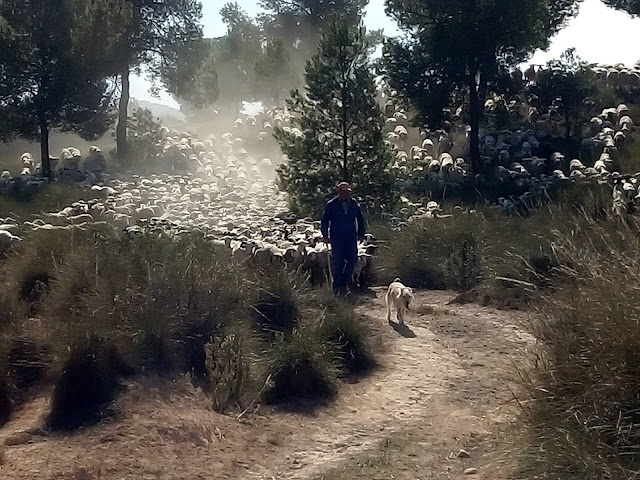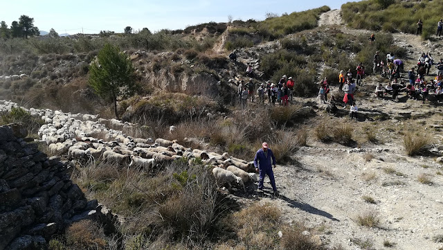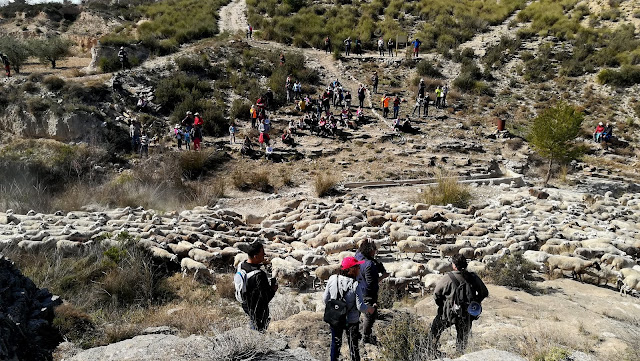 Esta mañana, 150 personas y 1.000 ovejas, guiadas por el pastor Rubén, han recorrido la vía pecuaria Cordel de las Pocicas y Cueva de la Excomunión con motivo de la VI Marcha ganadera por las vías pecuarias de Abarán (2019).